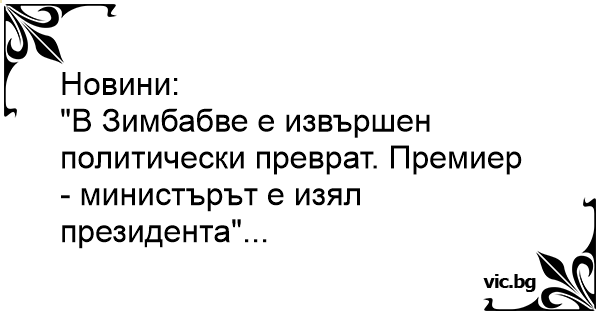 "В Зимбабве е извършен политически преврат. Премиер - министърът е изял президента"...
