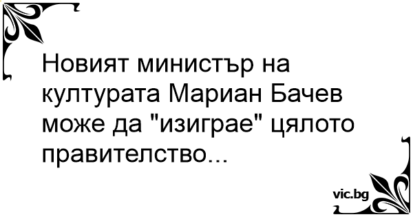 Новият министър на културата Мариан Бачев може да "изиграе" цялото правителство...