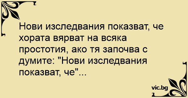 Нови изследвания показват, че хората вярват на всяка простотия, ако тя започва с думите: "Нови изследвания показват, че"...