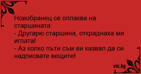 - Другарю старшина, откраднаха ми иглата!
