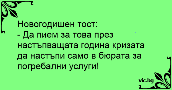 - Да пием за това през настъпващата година кризата да настъпи само в бюрата за погребални услуги!
