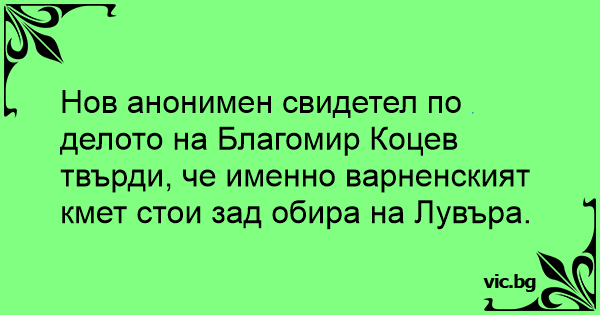Нов анонимен свидетел по делото на Благомир Коцев твърди, че именно варненският кмет стои зад обира на Лувъра.