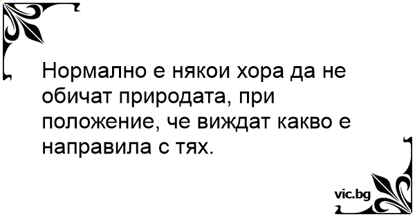 Нормално е някои хора да не обичат природата, при положение, че виждат какво е направила с тях.