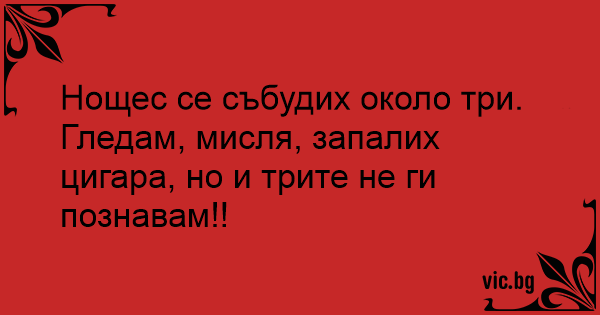 Гледам, мисля, запалих цигара, но и трите не ги познавам!!