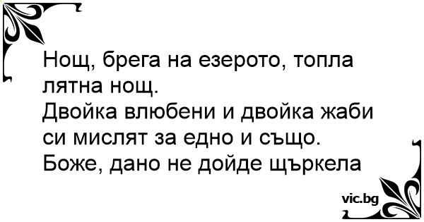 Двойка влюбени и двойка жаби си мислят за едно и също.