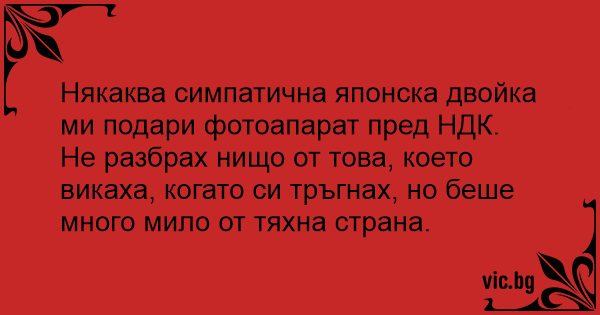 Някаква симпатична японска двойка ми подари фотоапарат пред НДК.