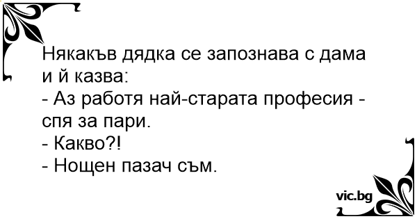 - Аз работя най-старата професия - спя за пари.
