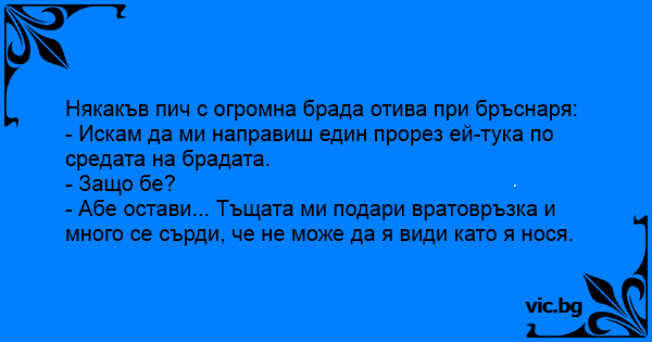 Някакъв пич с огромна брада отива при бръснаря: