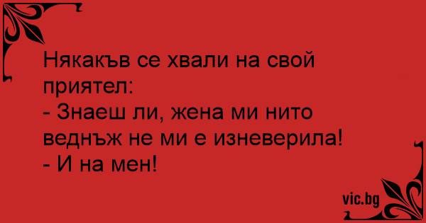 - Знаеш ли, жена ми нито веднъж не ми е изневерила!