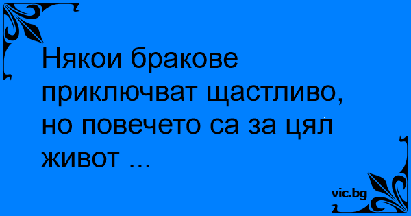 Някои бракове приключват щастливо, но повечето са за цял живот ...