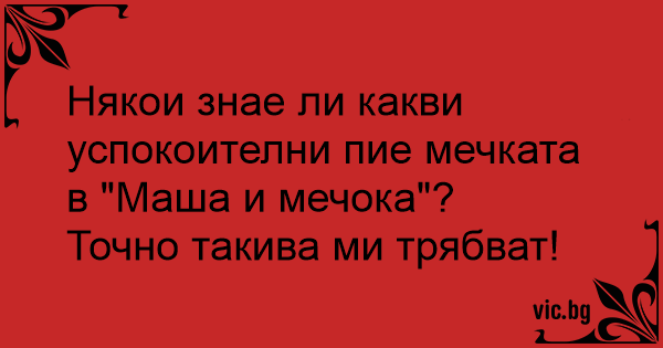 Някои знае ли какви успокоителни пие мечката в "Маша и мечока"?