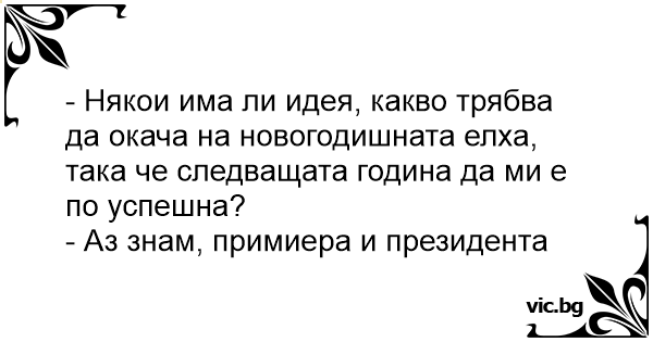 - Някои има ли идея, какво трябва да окача на новогодишната елха, така че следващата година да ми е по успешна?
