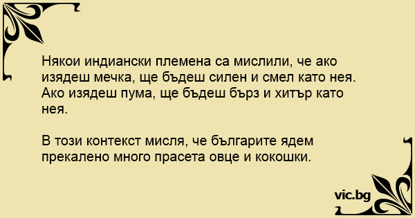Ако изядеш пума, ще бъдеш бърз и хитър като нея.