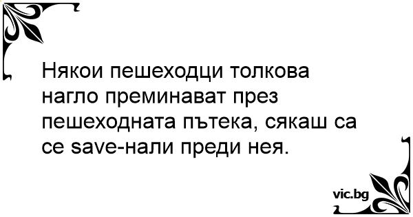 Някои пешеходци толкова нагло преминават през пешеходната пътека, сякаш са се save-нали преди нея.