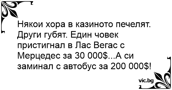 Други губят. Един човек пристигнал в Лас Вегас с Мерцедес за 30 000$...А си заминал с автобус за 200 000$!