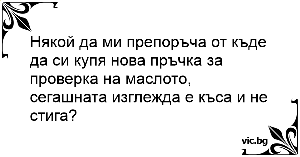 Някой да ми препоръча от къде да си купя нова пръчка за проверка на маслото, сегашната изглежда е къса и не стига?
