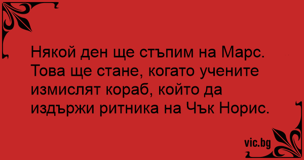 Някой ден ще стъпим на Марс. Това ще стане, когато учените измислят кораб, който да издържи ритника на Чък Норис.