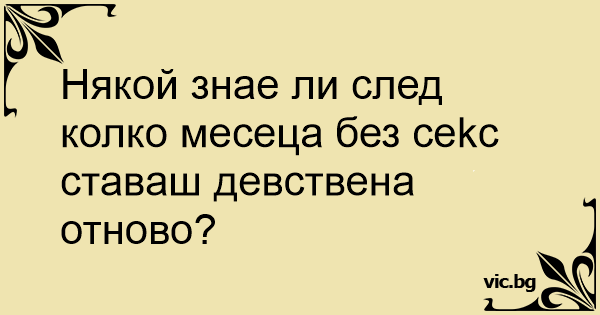 Някой знае ли след колко месеца без cekc ставаш девствена отново?