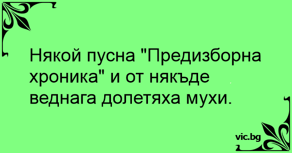 Някой пусна "Предизборна хроника" и от някъде веднага долетяха мухи.