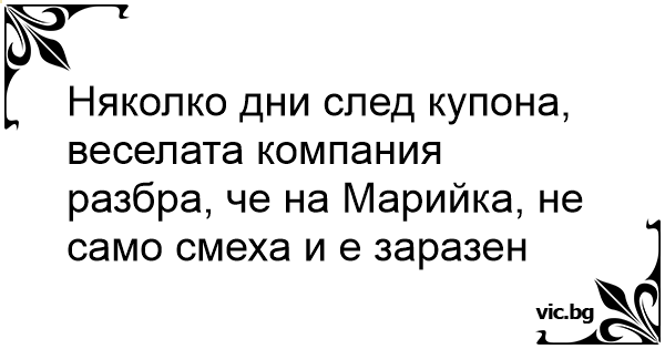 Няколко дни след купона, веселата компания разбра, че на Марийка, не само смеха и е заразен