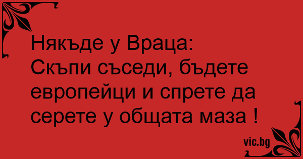 Скъпи съседи, бъдете европейци и спрете да серете у общата маза !