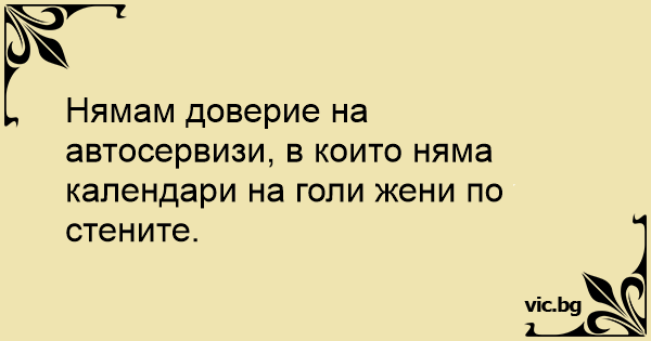 Нямам доверие на автосервизи, в които няма календари на голи жени по стените.
