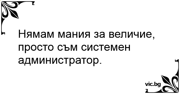 Нямам мания за величие, просто съм системен администратор.