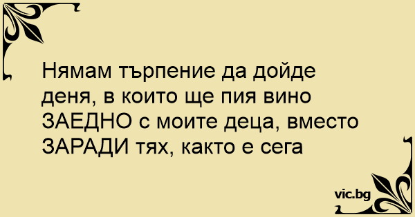 Нямам търпение да дойде деня, в които ще пия вино ЗАЕДНО с моите деца, вместо ЗАРАДИ тях, както е сега