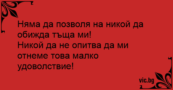 Никой да не опитва да ми отнеме това малко удоволствие!