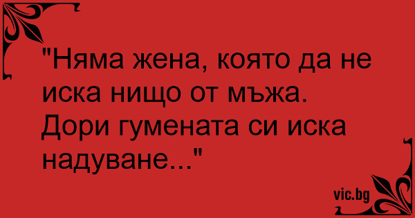 "Няма жена, която да не иска нищо от мъжа. Дори гумената си иска надуване..."