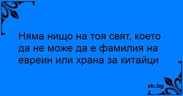 Няма нищо на тоя свят, което да не може да е фамилия на евреин или храна за китайци