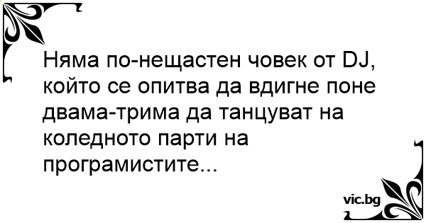 Няма по-нещастен човек от DJ, който се опитва да вдигне поне двама-трима да танцуват на коледното парти на програмистите...