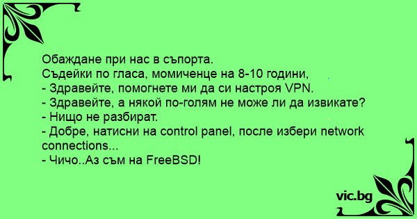• Вицове от Facebook от нашата страница https://www.facebook.com/www.vic.bg