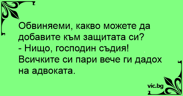 - Нищо, господин съдия! Всичките си пари вече ги дадох на адвоката.
