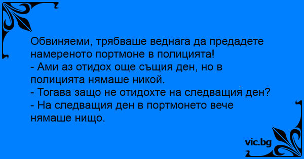 • Вицове от Facebook от нашата страница https://www.facebook.com/www.vic.bg