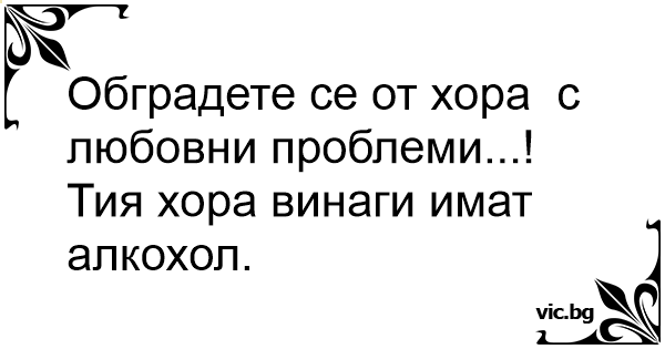 Обградете се от хора с любовни проблеми...! Тия хора винаги имат алкохол.