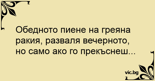 Обедното пиене на греяна ракия, разваля вечерното, но само ако го прекъснеш...