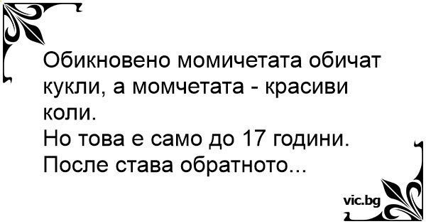 Στα μικρά αγόρια αρέσουν τα στρατιωτάκια, στα μικρά κορίτσια οι κούκλες. Στα μεγάλα αγόρια αρέσουν οι κούκλες και στα μεγάλα κορίτσια οι στρατιώτες.