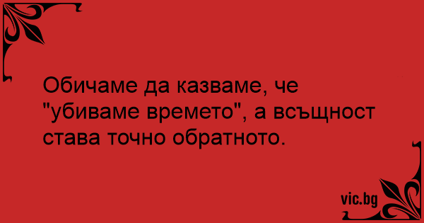 Обичаме да казваме, че "убиваме времето", а всъщност става точно обратното.