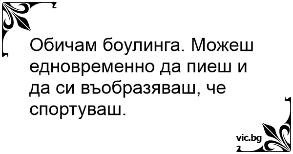 Обичам боулинга. Можеш едновременно да пиеш и да си въобразяваш, че спортуваш.