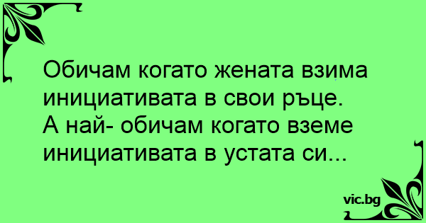 Обичам когато жената взима инициативата в свои ръце.