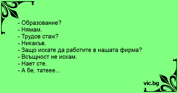 - Образование? - Нямам. -...
