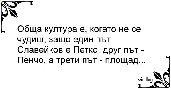 Обща култура е, когато не се чудиш, защо един път Славейков е Петко, друг път - Пенчо, а трети път - площад...