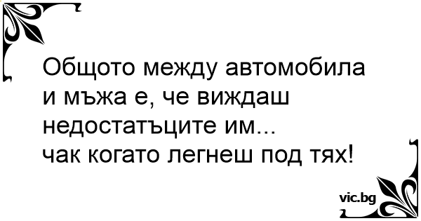 Общото между автомобила и мъжа е, че виждаш недостатъците им...