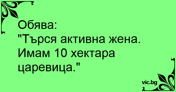 "Търся активна жена. Имам 10 хектара царевица."