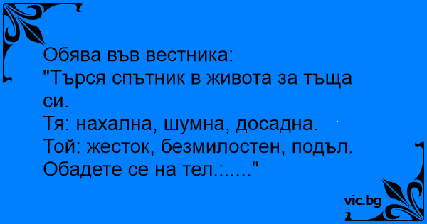 Обява във вестника:
