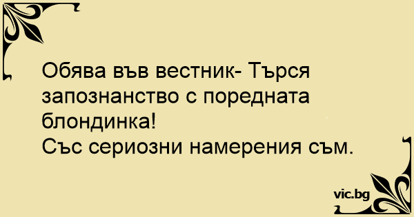 Обява във вестник- Търся запознанство с поредната блондинка!