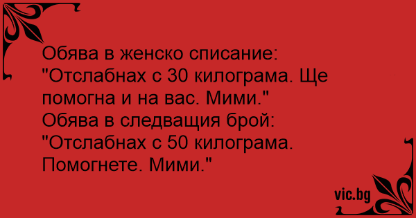 "Отслабнах с 30 килограма. Ще помогна и на вас. Мими."