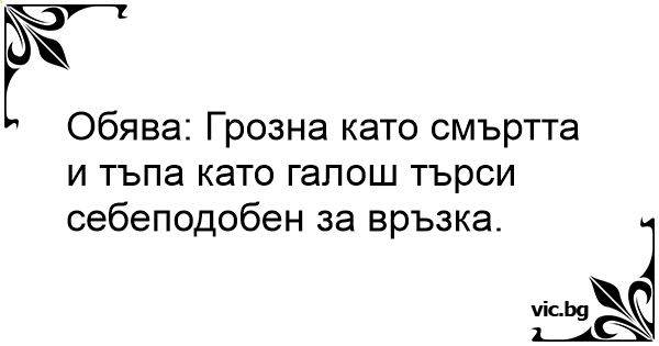 Обява: Грозна като смъртта и тъпа като галош търси себеподобен за връзка.