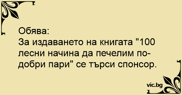За издаването на книгата "100 лесни начина да печелим по-добри пари" се търси спонсор.